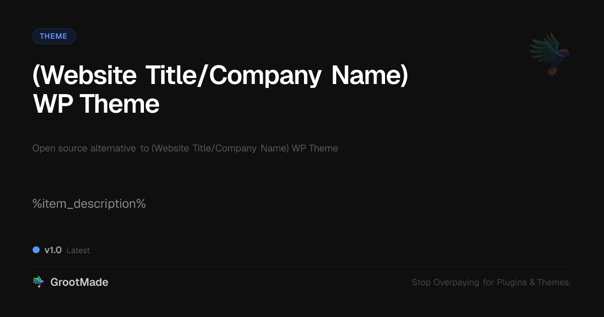 GrootMade is not affiliated with (Website Title/Company Name) WP Theme and provides an open-source alternative.