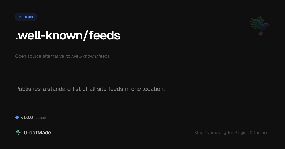GrootMade is not affiliated with .well-known/feeds and provides an open-source alternative.