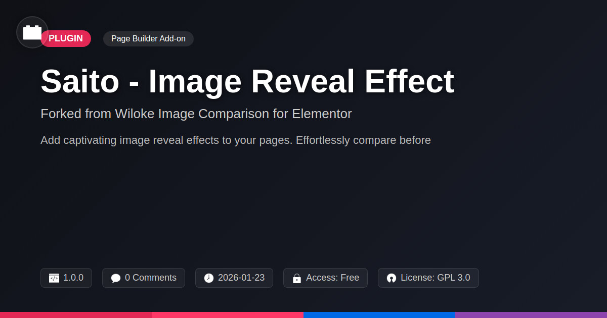 | Tags | elementor addon, web animations, web design, visual effects, image comparison, interactive elements, hover effects, frontend effects, reveal effect, creative design, WP community tools, Reveal Animation, Image Transitions, image effects, Digital Downloads, user engagement, member communication plugin, user contact form |
