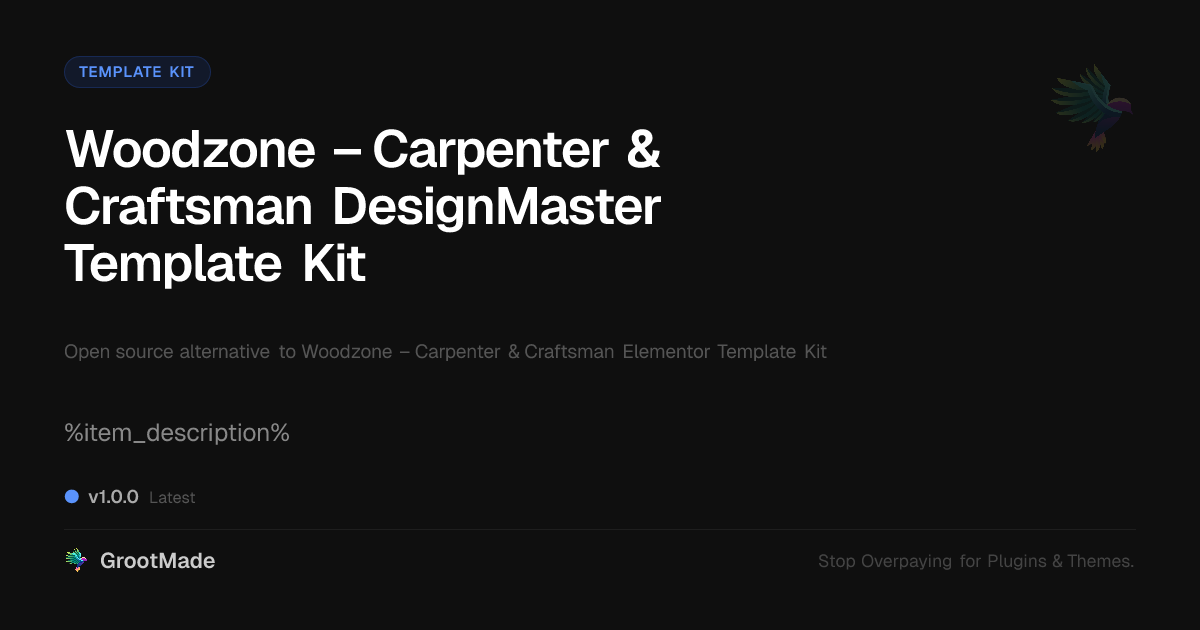 GrootMade is not affiliated with Woodzone – Carpenter & Craftsman Elementor Template Kit and provides an open-source alternative.