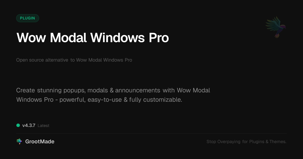 | Forked from | Wow Modal Windows Pro |