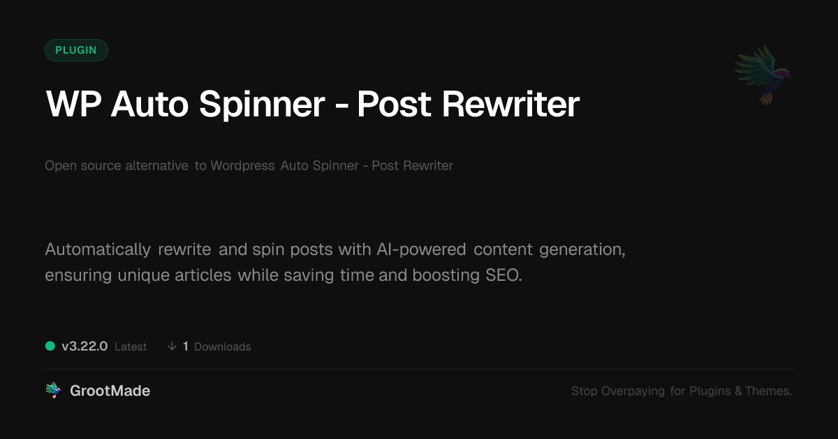 | Forked from | WP Auto Spinner - Post Rewriter |
