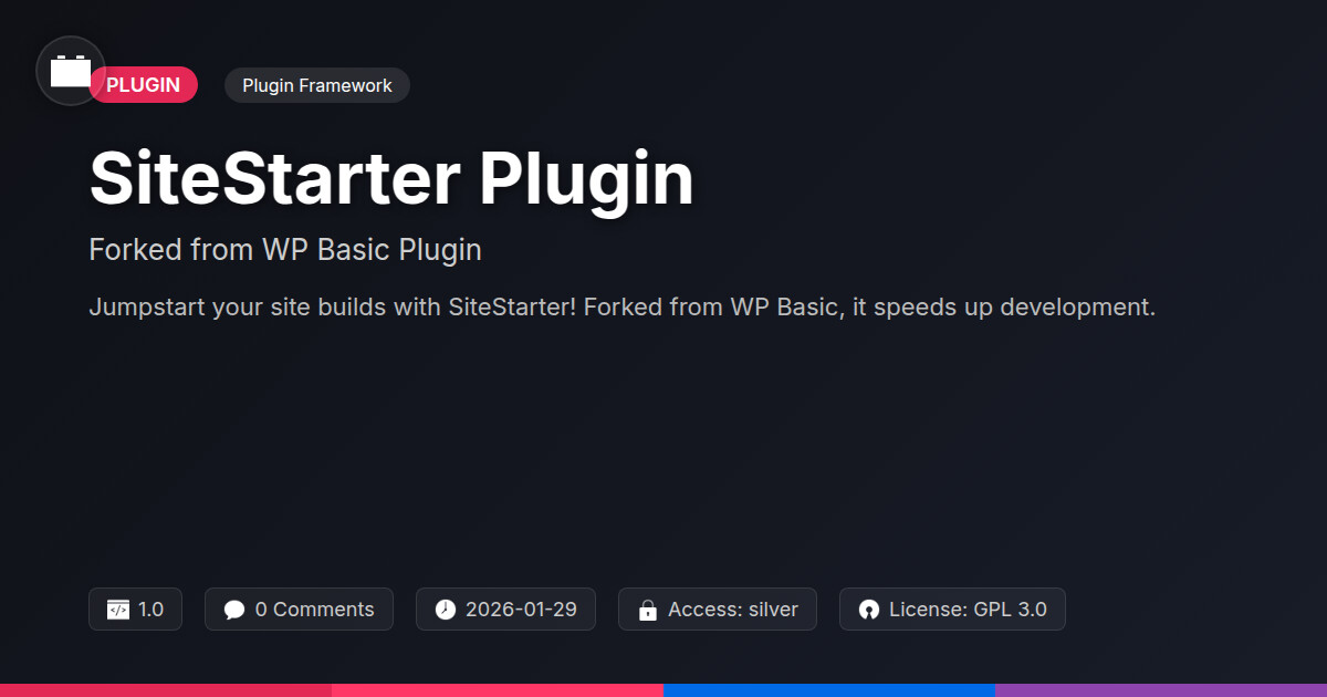 | Tags | plugin fork, customization, WP, site setup plugin, starter plugin, development, WP community tools, form to download link, Tools, Templates, Website, Themes, Starter, Sitebuilder, developer tool, plugin, web development, profile tab builder, user role visibility, member communication plugin, user contact form |