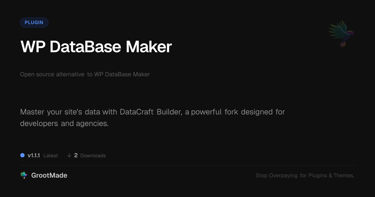 GrootMade is not affiliated with WP DataBase Maker and provides an open-source alternative.