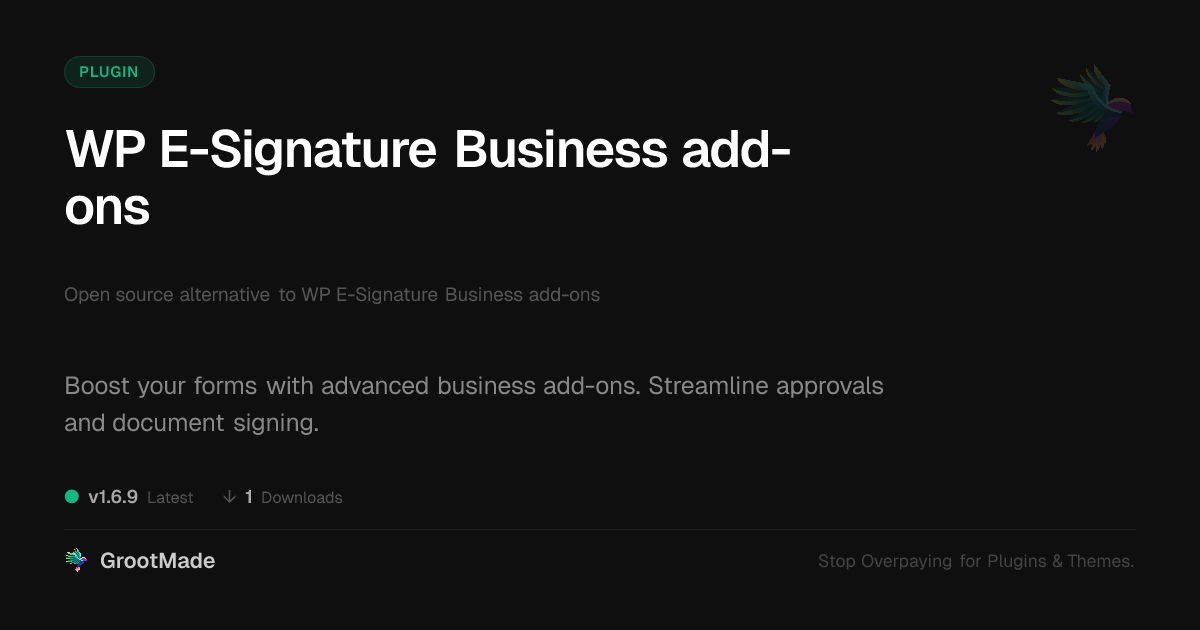 | Tags | workflow automation, digital signatures, contract management, form add-ons, business tools, Workflow, Legal Documents, Contracts, Approvals, Document Signing, Esignature, Business Documents, document management, directory comparison, Digital Downloads, profile tab builder, user role visibility, user contact form |