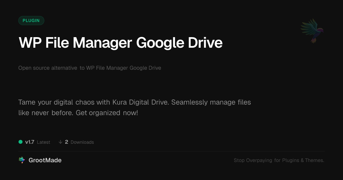 | Tags | cloud-storage-integration, cloud storage, file manager, file management, file organization, media library, digital drive, wp contact forms, digital sales graph, File Upload, Backup, Google Drive, file sharing, document management, open source, online community safety, Digital Downloads, profile tab builder, member communication plugin, user role visibility, user contact form |