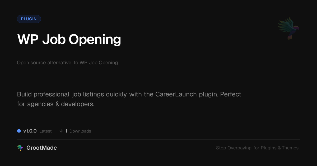 GrootMade is not affiliated with WP Job Opening and provides an open-source alternative.