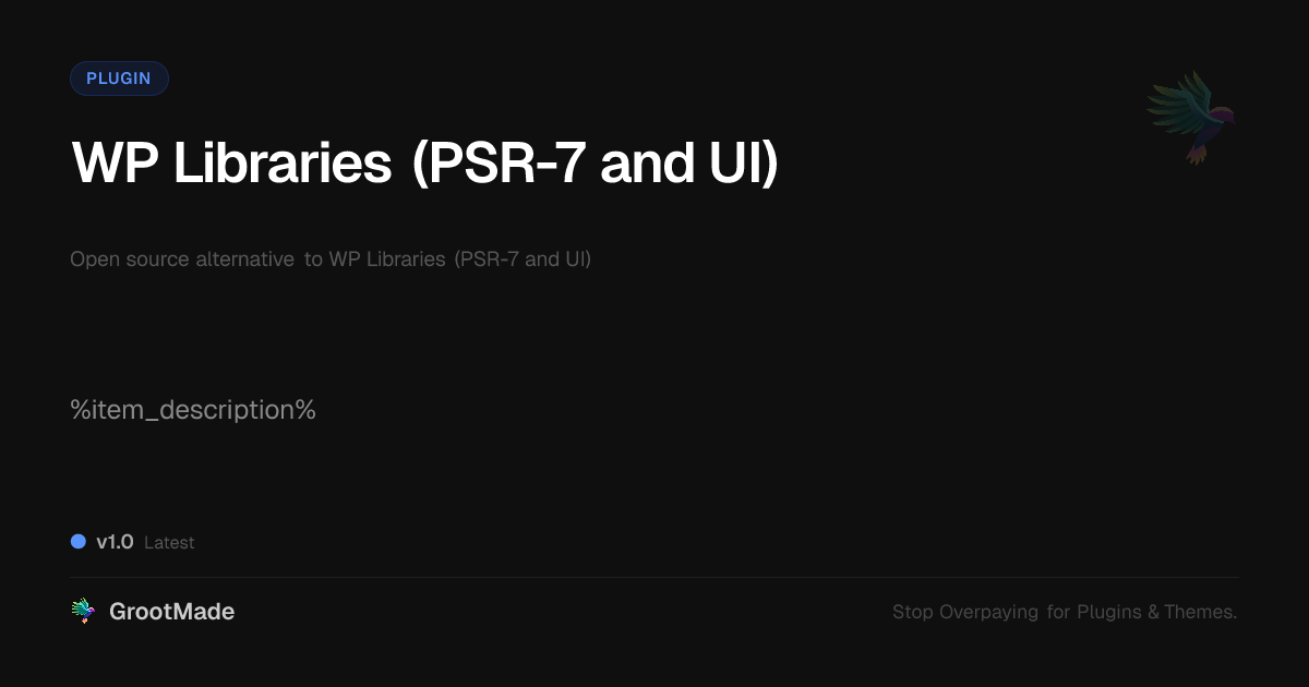 GrootMade is not affiliated with WP Libraries (PSR-7 and UI) and provides an open-source alternative.