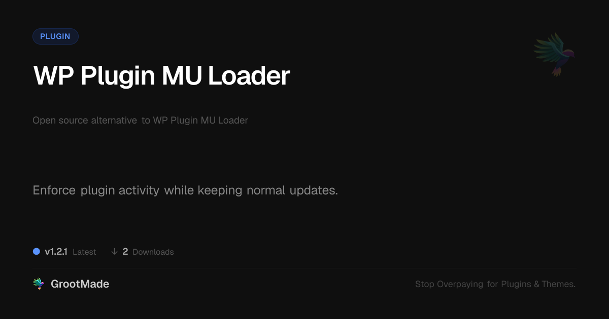 GrootMade is not affiliated with WP Plugin MU Loader and provides an open-source alternative.