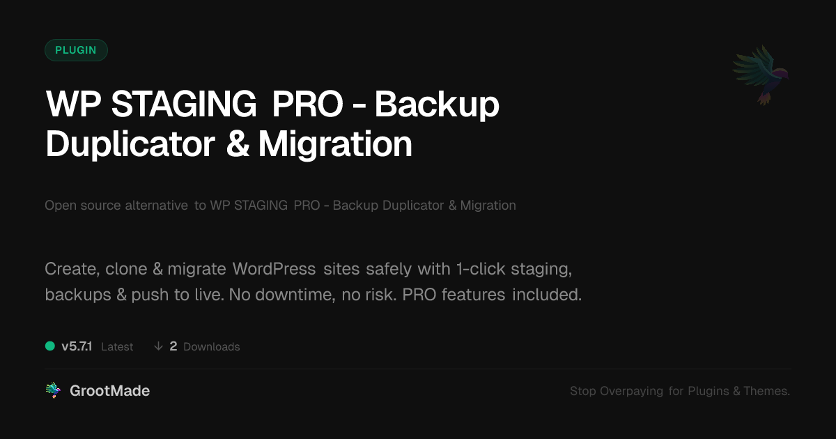 | Forked from | WP STAGING PRO - Backup Duplicator & Migration |