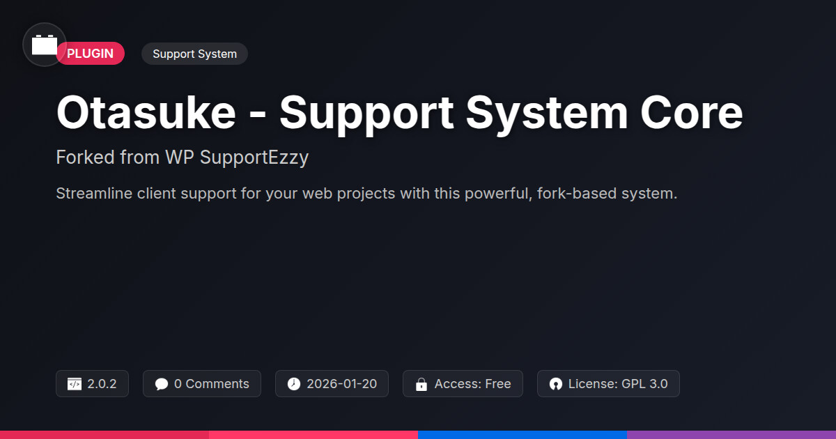 | Tags | Support System, help desk software, ticket system, issue tracking, web development support, client ticket management, support system plugin, Helpdesk, Troubleshooting, Plugin Core, Technical Support, Feedback Management, online community safety, profile tab builder, customer support, user contact form, Open Source Support, User Assistance, member communication plugin |
