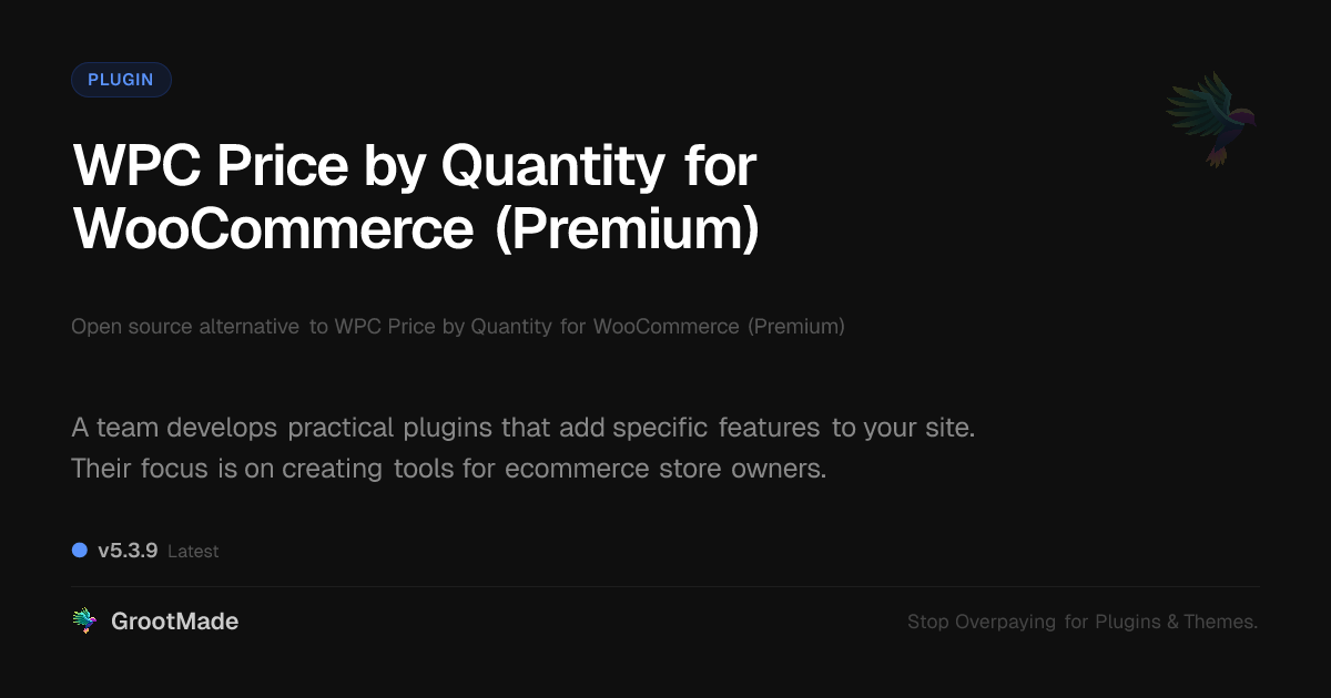 GrootMade is not affiliated with WPC Price by Quantity for WC (Premium) and provides an open-source alternative.