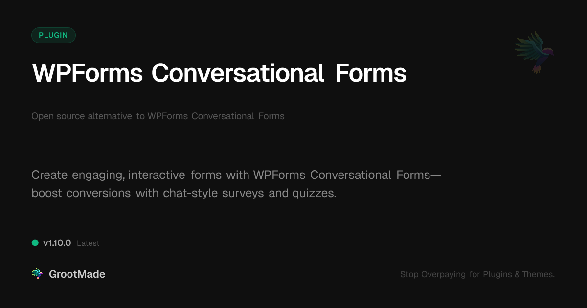 GrootMade is not affiliated with WPForms Conversational Forms and provides an open-source alternative.