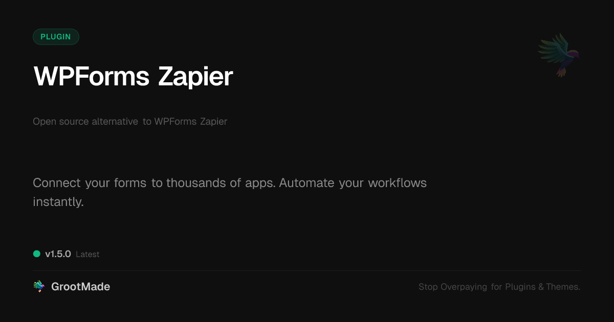 | Tags | workflow automation, data transfer, form automation, data integration, form submission, zapier alternative, image sharing plugin, image metadata display, Zapier, Workflows, Productivity, Api, automation, webhooks, clean shop design, pagination addon, profile tab builder, integration, Forms, user role visibility, user contact form |