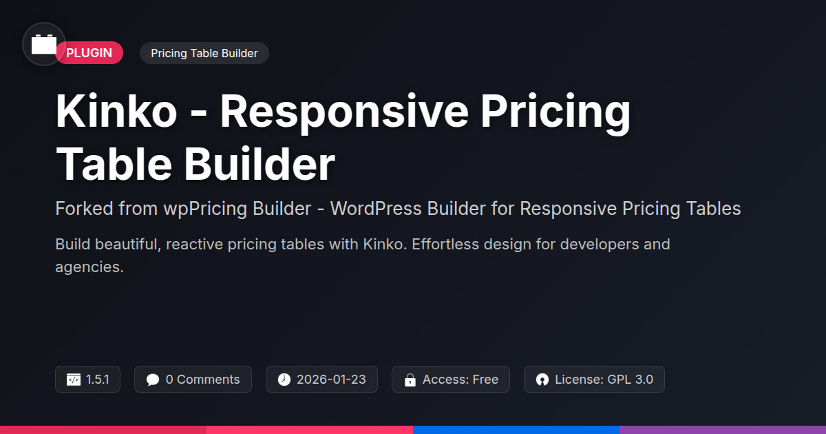 | Forked from | wpPricing Builder - WP Builder for Responsive Pricing Tables |