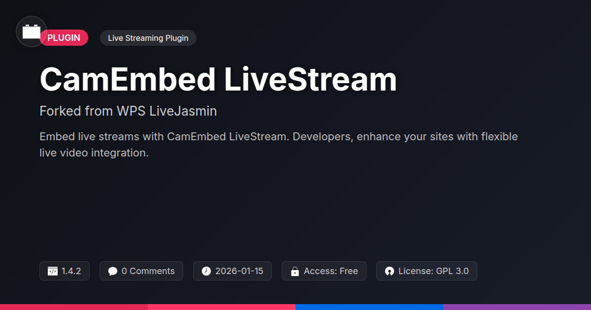 | Tags | video embedding, agency plugin, streaming solution, video player, live stream embed, video embed plugin, downloadable product plugin, content spotlight plugin, Video Hosting, Video Content, Livestream, Live Video, Camembed, Webcam Integration, Live Broadcasting, streaming, online community safety, Digital Downloads, profile tab builder, user contact form |