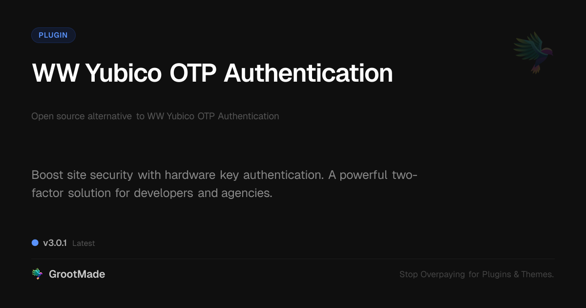 GrootMade is not affiliated with WW Yubico OTP Authentication and provides an open-source alternative.