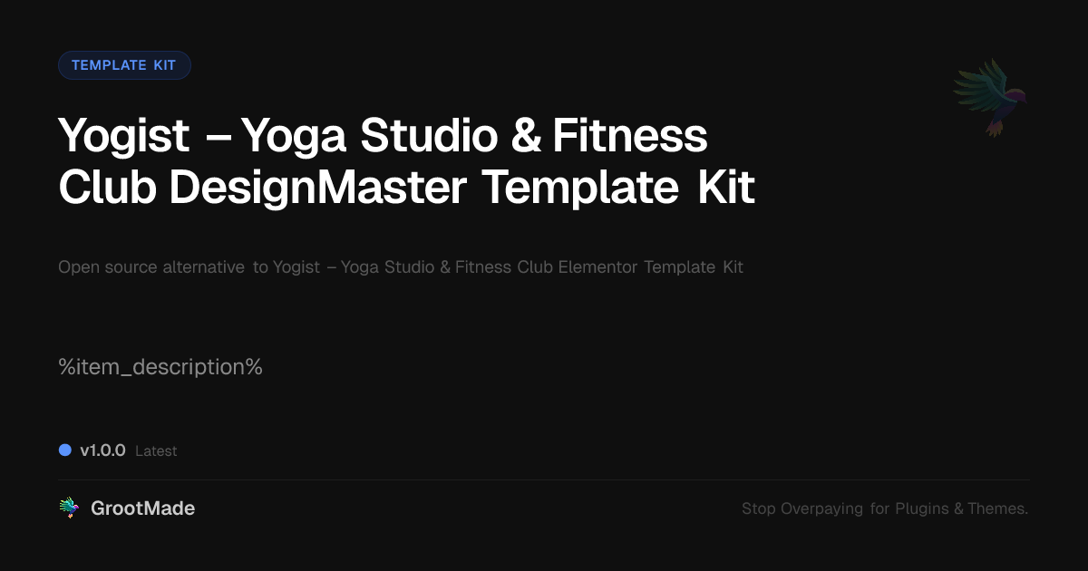 GrootMade is not affiliated with Yogist – Yoga Studio & Fitness Club Elementor Template Kit and provides an open-source alternative.