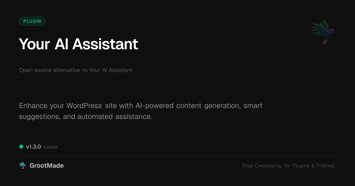 | Tags | photo proofing plugin, Productivity, Ai, Chatbot, Assistant, Conversation, Virtual Assistant, Smart Assistant, Artificial Intelligence, recent profile visitors, customer support, automation, user role visibility, member communication plugin |