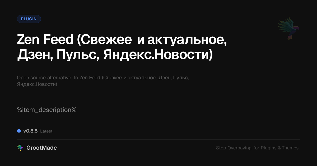 GrootMade is not affiliated with Zen Feed (Свежее и актуальное, Дзен, Пульс, Яндекс.Новости) and provides an open-source alternative.
