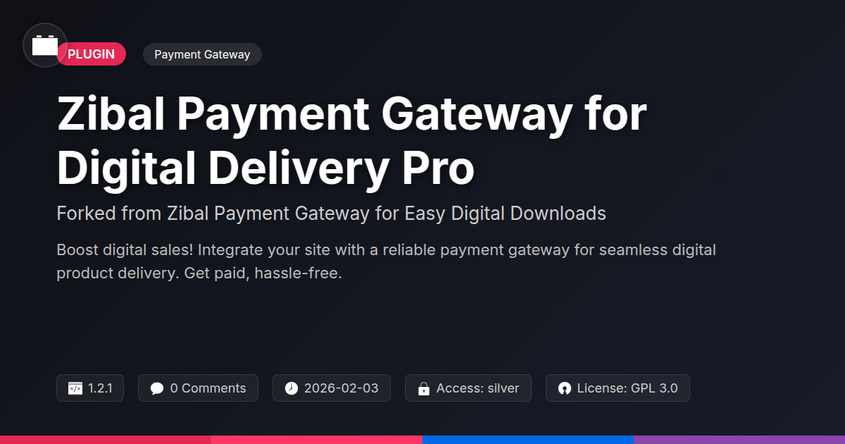 | Tags | digital delivery pro, easy digital sales plugin, digital products, data tracking software, payment gateway for developers, digital product payment, WC, user role visibility, iran payment gateway, Ecommerce, profile tab builder, Payment Gateway, Iran Payment, Zibal, member profile enhancements, secure payments, Online Payments, Checkout, open source payment |