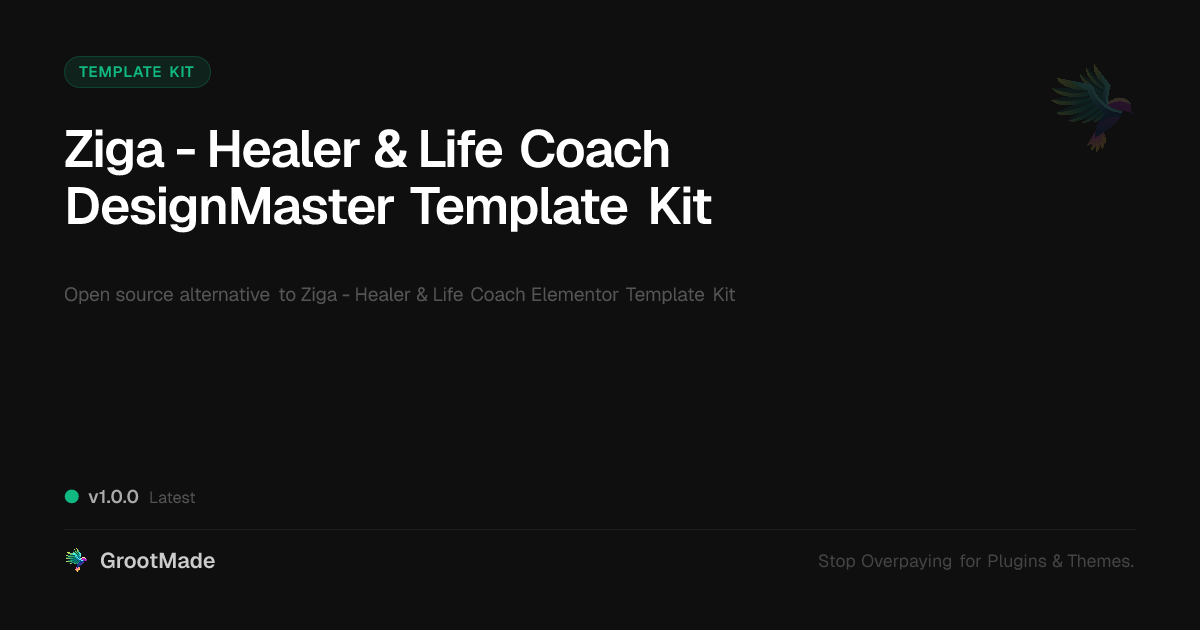 | Forked from | Ziga - Healer & Life Coach Elementor Template Kit |