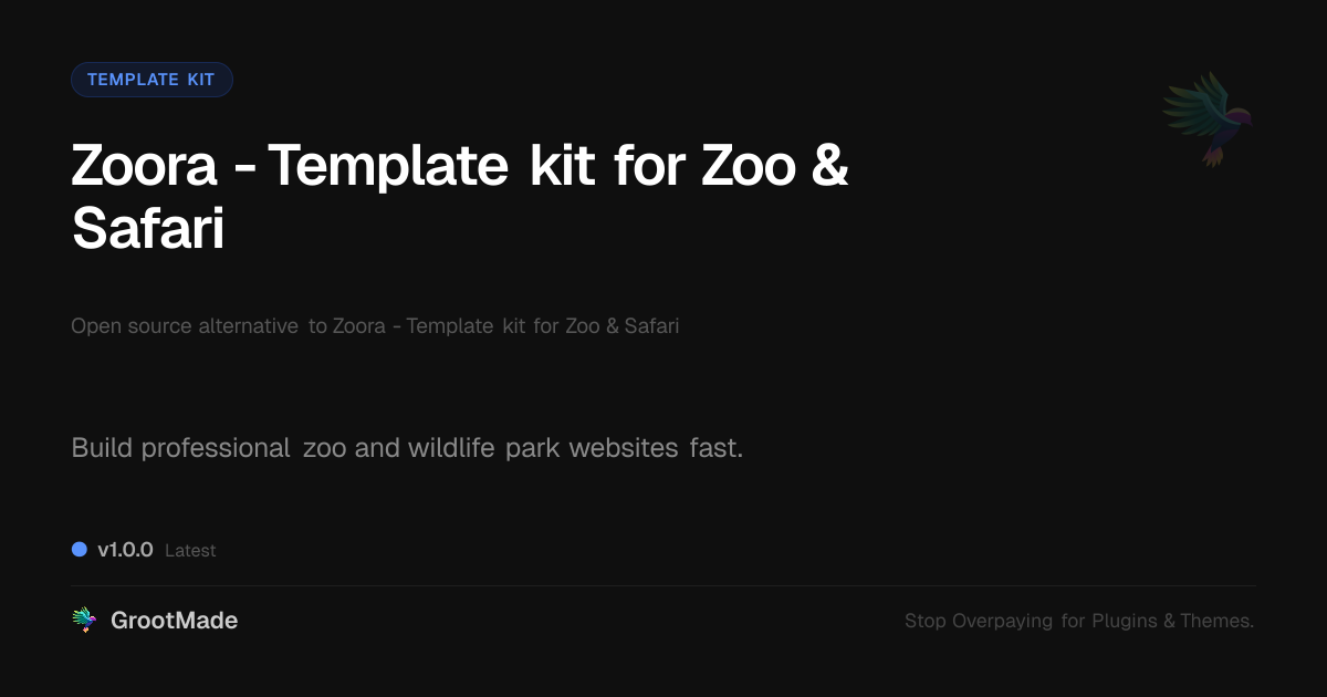 GrootMade is not affiliated with Zoora - Template kit for Zoo & Safari and provides an open-source alternative.
