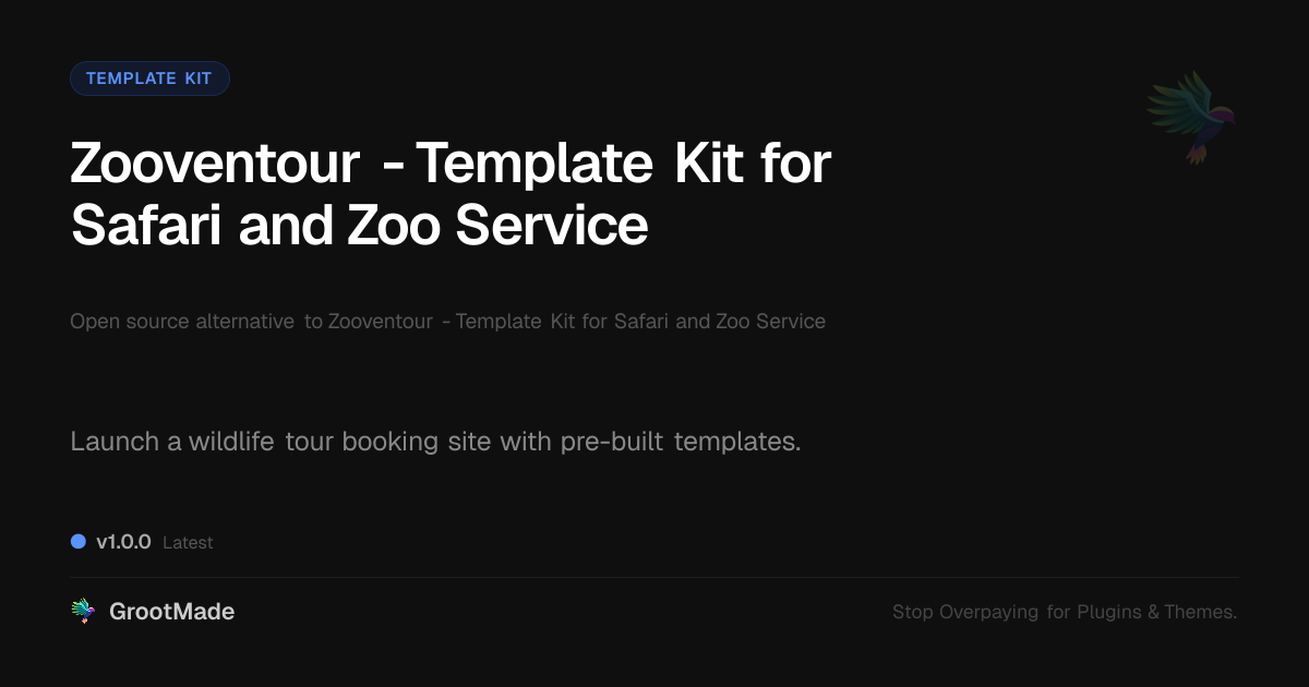 GrootMade is not affiliated with Zooventour - Template Kit for Safari and Zoo Service and provides an open-source alternative.