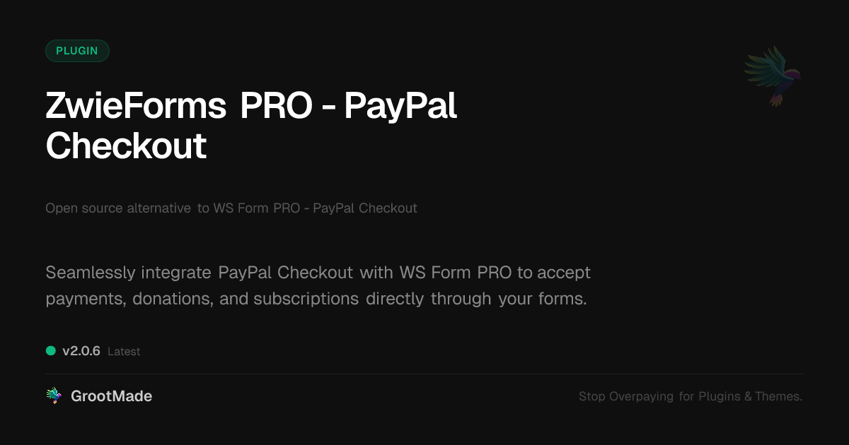 | Tags | payment integration, web forms, Payments, Paypal, Ws Form, Payment Gateway, data tracking software, Checkout, Online Payments, clean shop design, profile tab builder, Forms, ecommerce, user role visibility, member communication plugin |